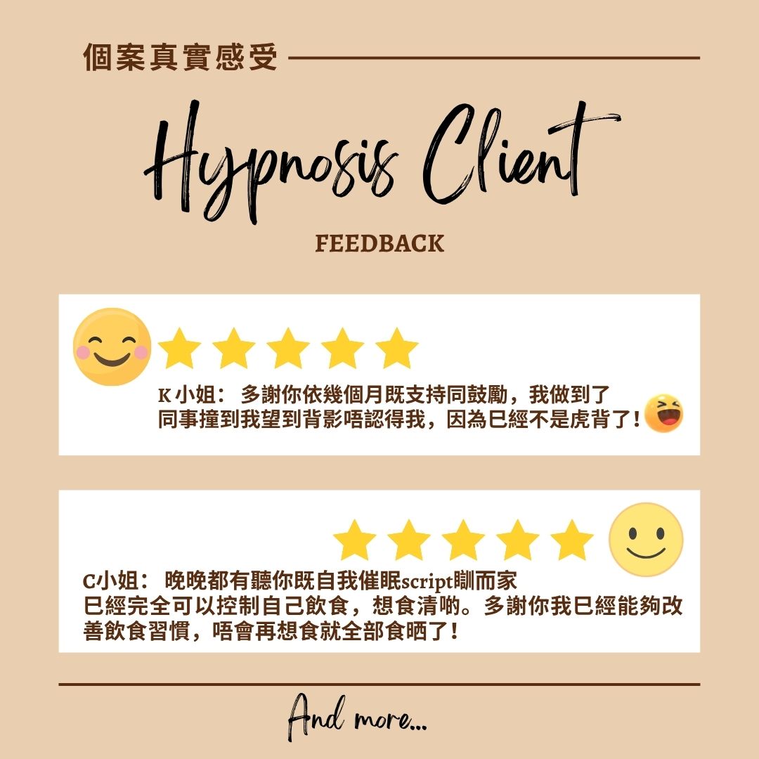 • 第二及第三次會面: 必須每星期見催眠治療師,檢討上星期情況然後進行催眠。每次催眠完結後,個案亦必須回去做自我催眠。